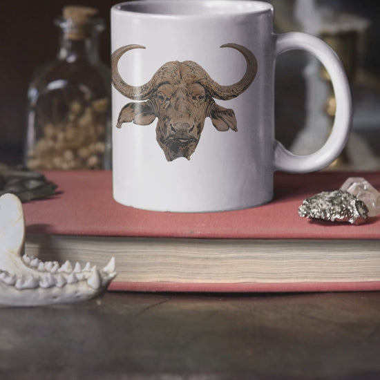 Treat yourself or surprise a loved one with our stunning 11oz white ceramic mug, featuring an illustration of an African Cape Buffalo from the therobs Wildlife Collection. Made from premium glossy ceramic, this mug not only presents a chic and modern design but also displays a captivating image of the powerful Cape Buffalo. Perfect for enjoying your morning coffee or savouring evening hot chocolate, this mug brings a touch of adventure and wild sophistication to your everyday routine.
