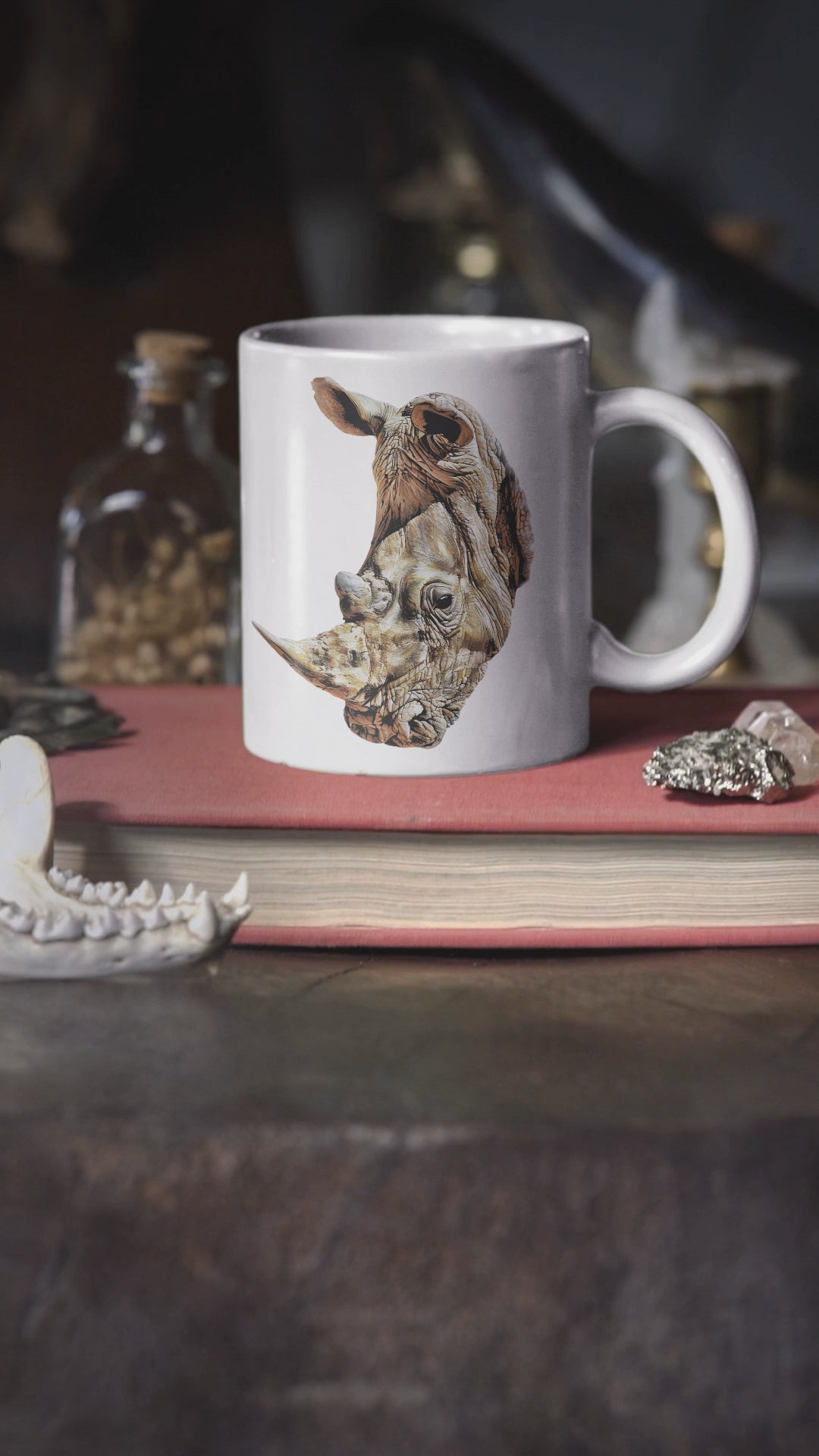 Treat yourself or surprise a loved one with our stunning 11oz white ceramic mug, featuring an illustration of an African Rhino from the therobs Wildlife Collection. Made from premium glossy ceramic, this mug not only presents a chic and modern design but also displays a captivating image of the powerful Rhino. Perfect for enjoying your morning coffee or savouring evening hot chocolate, this mug brings a touch of adventure and wild sophistication to your everyday routine.