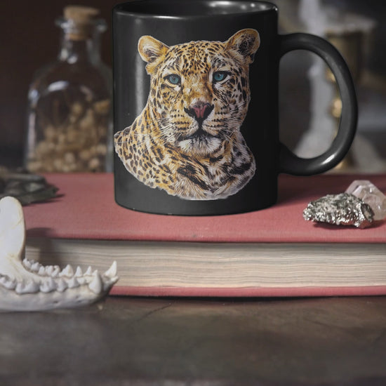 Treat yourself or surprise a loved one with our stunning 15oz large black mug, featuring an illustration of a Leopard from the therobs Wildlife Collection. Made from premium glossy ceramic, this mug not only presents a chic and modern design but also displays a captivating image of the majestic Leopard. Perfect for enjoying your morning coffee or savouring evening hot chocolate, this mug brings a touch of adventure and wild sophistication to your everyday routine.