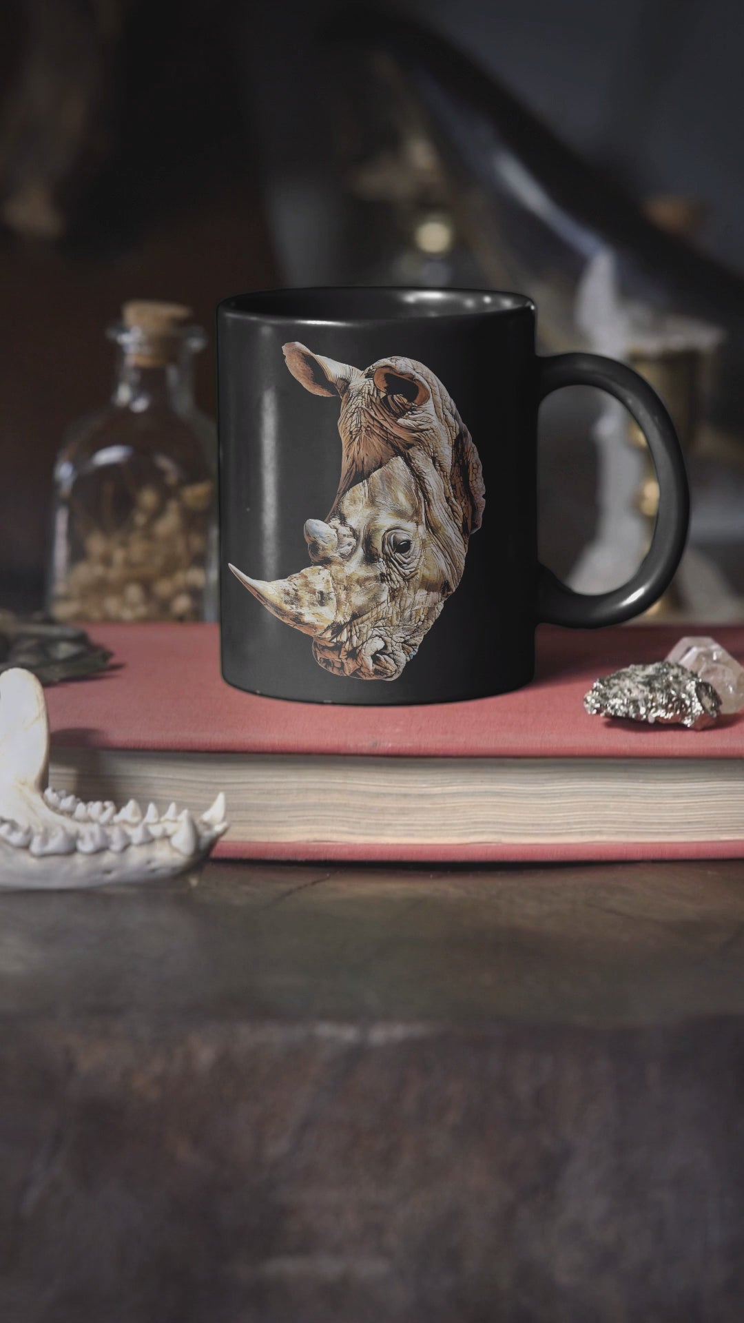 Rhino 15oz Large Black Ceramic Mug II